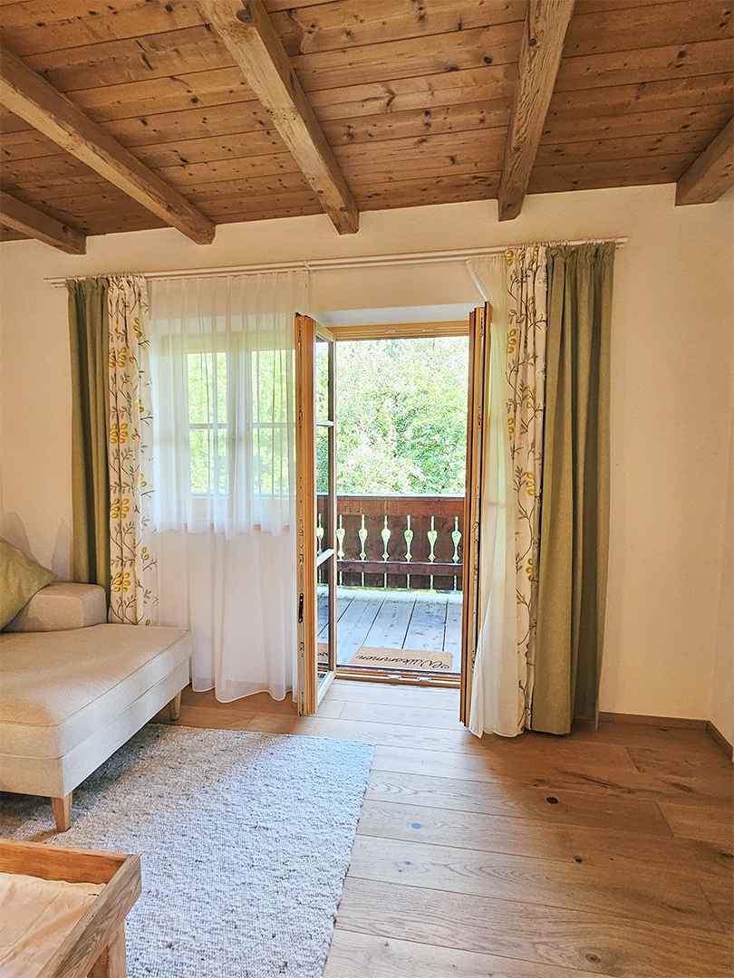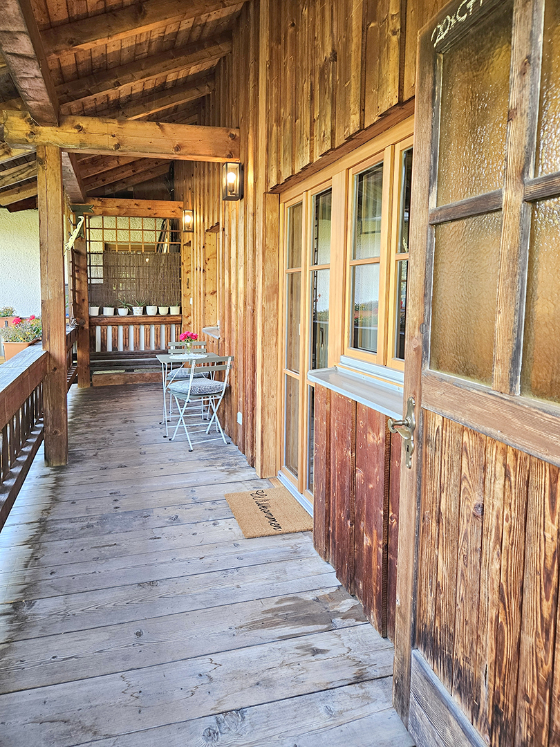 Ferienwohnung Gärtnergassl am Chiemsee Blick zum Balkon